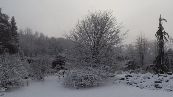 V prosinci se objevují první květy jasmínu nahokvětého (Jasminum nudiflorum), mnohem bohatěji rozkvétá v lednu až únoru. Stejně jako hybridní vilín Hamamelis × intermedia vysazený na centrálním trávníku, který za dobrého počasí vykvétá již v lednu. Alergiky nepotěší kvetoucí líska obecná (Corylus avellana) a že je zima ji vůbec nevadí. Jakmile se alespoň trochu přiblíží jaro, začnou vyrážet první cibuloviny – sněženky, bledule a talovíny. Pod sněhem se objevují první květy čemeřic (Helleborus) – na ty vás nalákáme do míst v blízkosti naší jedovaté zahrádky.
