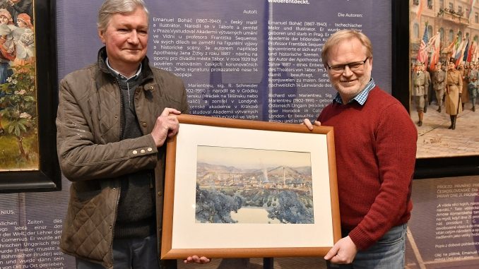 V kulisách výstavy „Schichtova epopej“ daroval ústeckému muzeu několik vzácných rodinných památek. Peter Schicht přijel se svými dvěma dcerami a jejich doprovodem.