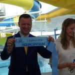 První štafetu tvořila nejlepší česká plavkyně Simona Baumrtová – Kubová a tři děti z plaveckého klubu Krupka – Nikola Kulhavá, Aneta Vlasáková a Jonáš Vlk. Proti nim nastoupil primátor Hynek Hanza, náměstek primátora Jiří Štábl, oblastní ředitel Metrostavu Roman Vildner a ředitel Aquacentra Michael Paraska. Vítězem byla štafeta Simony Baumrtové. V závěru předvedl úspěšný teplický freediver David Vencl ukázku dynamiky s monoploutví.