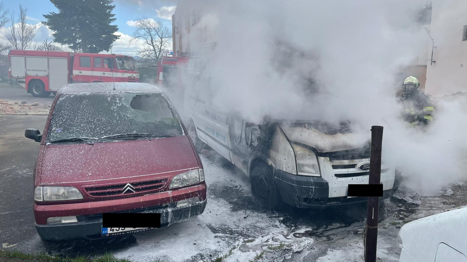 Dnes krátce po půl druhé odpoledne zasahovala jednotka hasičů ze stanice Teplice u požáru dodávky v Nákladní ulici v Trnovanech. Požár zasáhl i vedle zaparkované osobní auto.