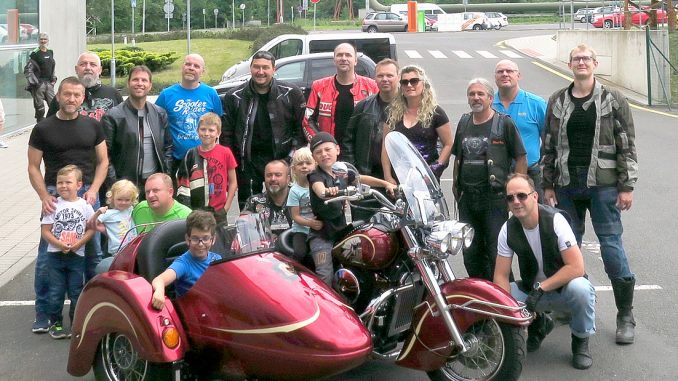 Kromě dvanácti modelů, přijeli na motorkách do Informačního centra podpořit Kryštofa další desítky zaměstnanců, včetně životních partnerů a dětí.