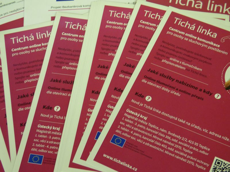 Město Teplice vyšlo vstříc neslyšícím a zapojilo se do projektu Bezbariérová komunikace pro neslyšící, která nabízí službu s názvem Tichá linka. Tichá linka nabízí nonstop službu online přepisu mluvené řeči a online tlumočení českého znakového jazyka neslyšícím. Cílem této služby je usnadnit neslyšícím komunikaci s úředníky.