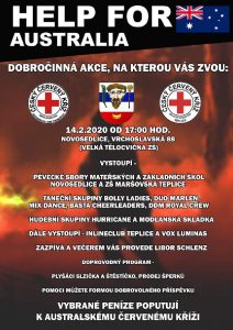 Help for Australia se koná 14. února od 17:00 v Novosedlicích, Vrchoslavská 88 – velká tělocvična ZŠ. Vstupné na akci je dobrovolné. Vybrané peníze poputují australskému Červenému kříži.