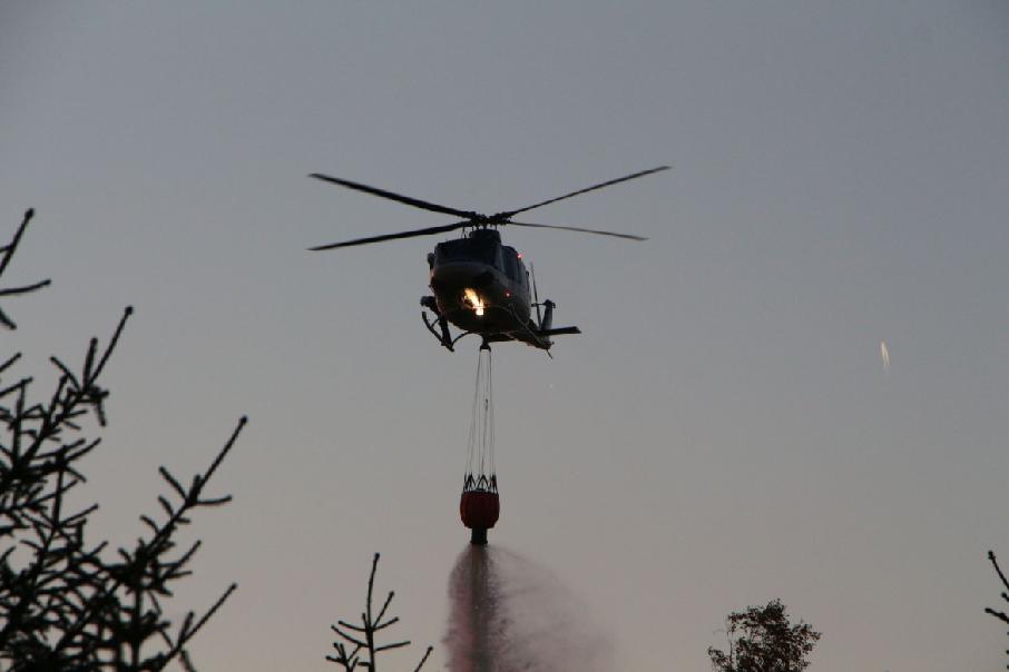 „Vodu shazuje vrtulník. Požár se nešíří, ale zasahuje do hloubky. Je třeba velké množství vody na prolití. Voda je vedena dálkovým vedením a dopravována kyvadlově,“ dodává mluvčí hasičů.
