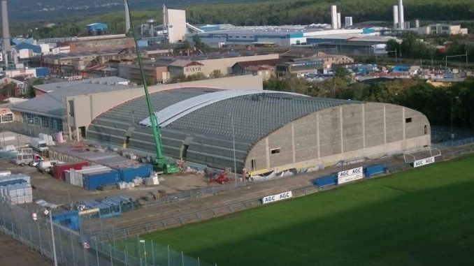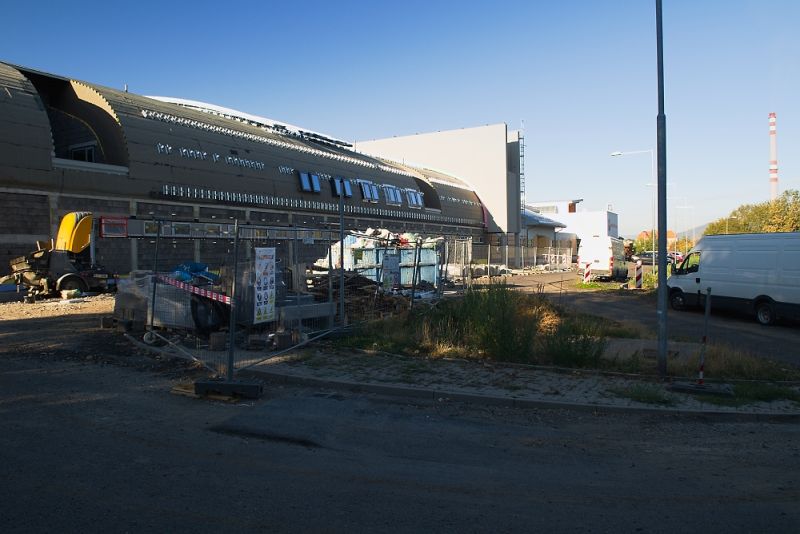 Nový zimní stadion vedle Sportovní haly Na Stínadlech roste před očima. Čilý stavební ruch slibuje už v prosinci zkušební provoz a veřejnosti novou ledovou plochu k dispozici začátkem roku 2019.